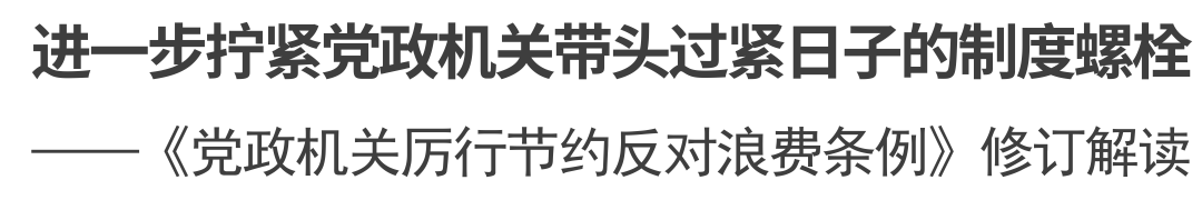 2025年5月,党中央印发修订后的《党政机关厉行节约反对浪费条例》(以下简称《条例》)。在深入贯彻中央八项规定精神学习教育走深走实之际,党中央对《条例》作了修订,进一步拧紧党政机关带头过紧日子的制度螺栓,这既是助力深入贯彻中央八项规定精神学习教育的重要举措,也是健全作风建设常态化、长效化机制的必然要求。
