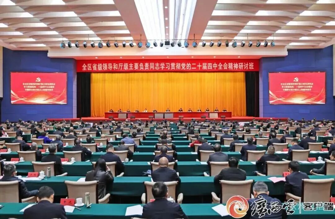 1月27日,全区省级领导和厅级主要负责同志学习贯彻党的二十届四中全会精神研讨班在南宁开班。自治区党委书记、自治区人大常委会主任陈刚作开班讲话,强调要深入学习贯彻习近平总书记在党的二十届四中全会和省部级主要领导干部学习贯彻党的二十届四中全会精神专题研讨班开班式上的重要讲话精神,贯彻落实习近平总书记关于广西工作论述的重要要求,牢牢把握“十五五”时期广西发展的历史方位和重大使命,解放思想、创新求变,向海图强、开放发展,坚持实干为要、创新为魂,用业绩说话、让人民评价,勠力同心、埋头苦干,敢想敢拼、善作善成,努力实现“十五五”良好开局,奋力谱写中国式现代化广西篇章。自治区主席韦韬主持开班式。自治区政协主席孙大伟出席。