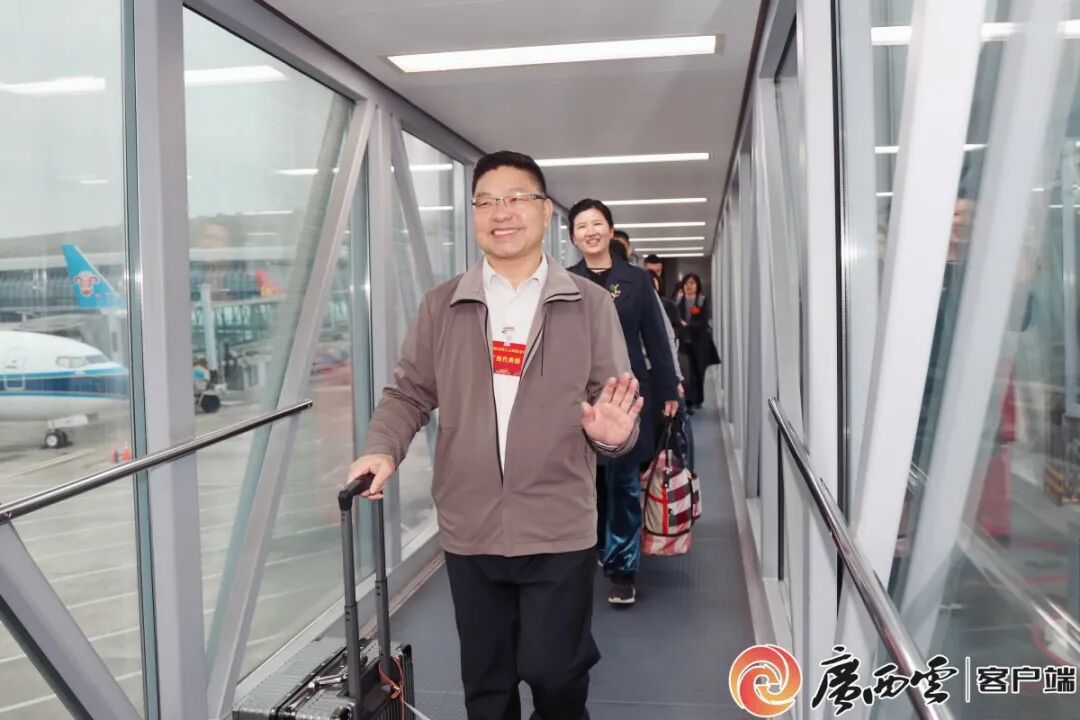 与春天有约,共赴盛会!3月3日上午,在桂全国人大代表从南宁启程飞往北京,出席即将召开的十四届全国人大四次会议。