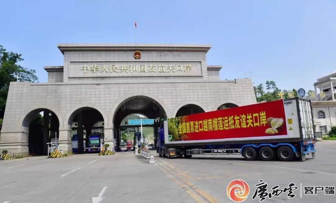 越南榴莲运抵广西凭祥友谊关口岸。邓敏 庞立坚 摄(资料图)来源:广西云-广西日报