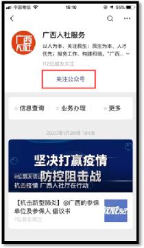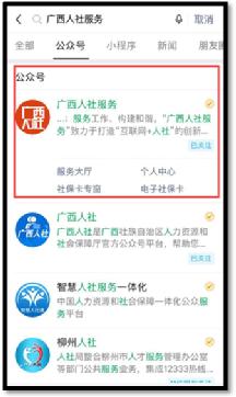 1、在微信上搜索“广西人社服务”微信公众号并关注