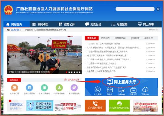 2.点击“网上服务大厅”进入“广西“数字人社”网上服务大厅”页面。