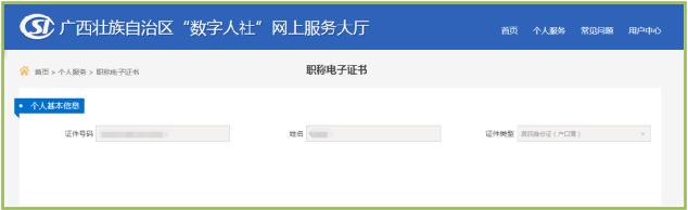 个人用户进入“职称电子证书”事项后,默认按照登录人来查询。