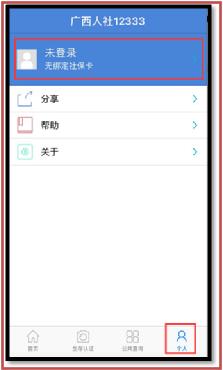 2、打开“广西人社”App后,点击界面右下方的“个人”按钮跳转至登录界面