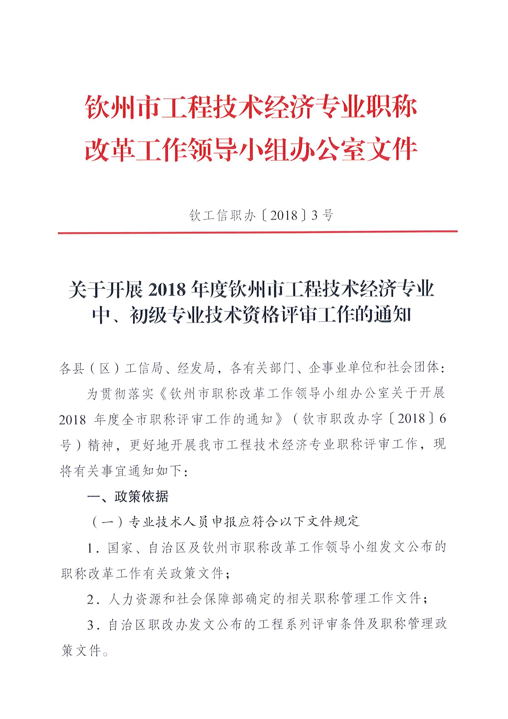 关于开展2018年度钦州市工程技术经济专业中、初级专业技术资格评审工作的通知