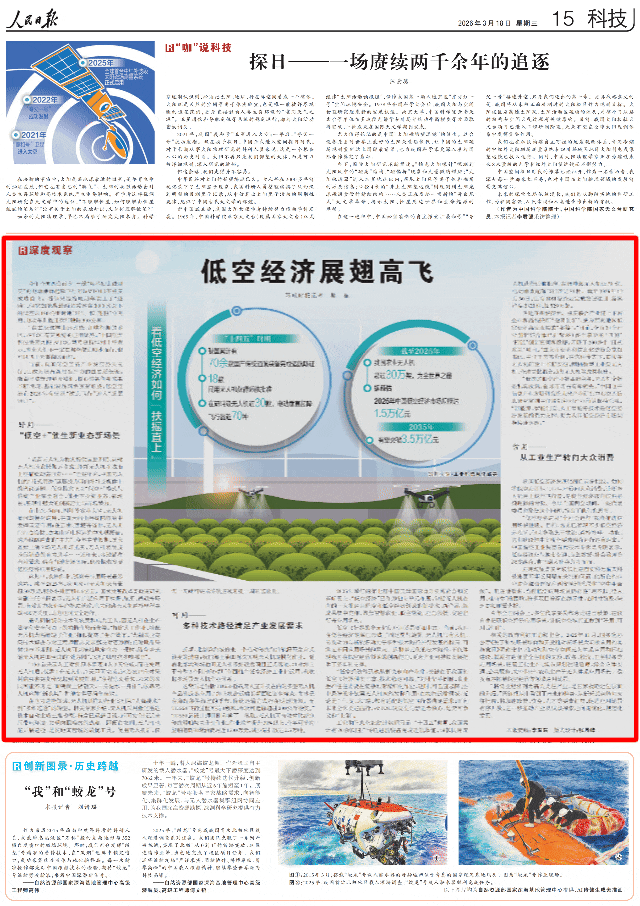 “低空经济应从‘全社会运行’视角推进应用场景建设。目前,各地已涌现不少低空经济示范区,但大多聚焦于物流、巡检等单一功能。这和我设想中实现全要素融合运行还有距离。”中国航空工业集团首席技术专家吴希明表示,低空经济应与城市交通、应急救援、社会治理等深度融合,真正融入社会方方面面。