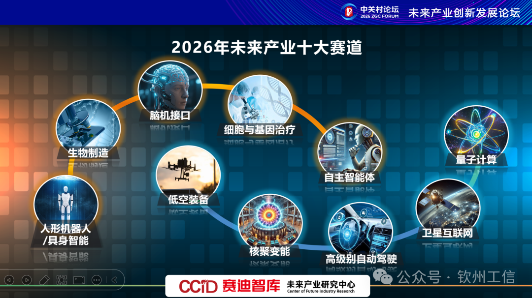 3月26日,《2026年未来产业十大赛道》报告在2026中关村论坛未来产业创新发展论坛上正式发布,这是中国电子信息产业发展研究院(赛迪研究院)未来产业研究中心连续第二年在中关村论坛发布“未来产业新赛道研究”系列成果。赛迪研究院副院长朱敏对报告内容进行了详细阐述。报告对2025年发布的未来产业十大赛道进行了全面回顾与前瞻展望,并结合2026年未来产业发展呈现的新特征、新趋势,在系统梳理全球前沿赛道最新发展进展的基础上,依据赛迪未来产业赛道评估体系,形成“2026年未来产业十大赛道”。