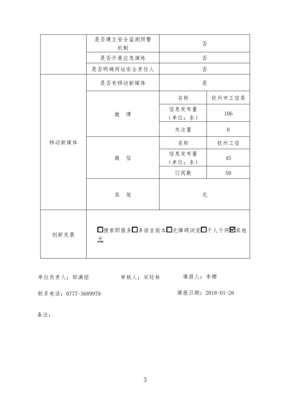 钦州市工业和信息化委员会2017年度政府网站年度报表