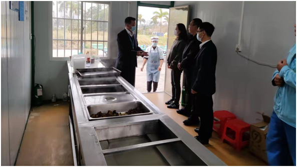 ▲裴云带队走访中国石油运输有限公司钦州分公司饭堂,检查厨房、冷热熟食间、食物储藏间等设备