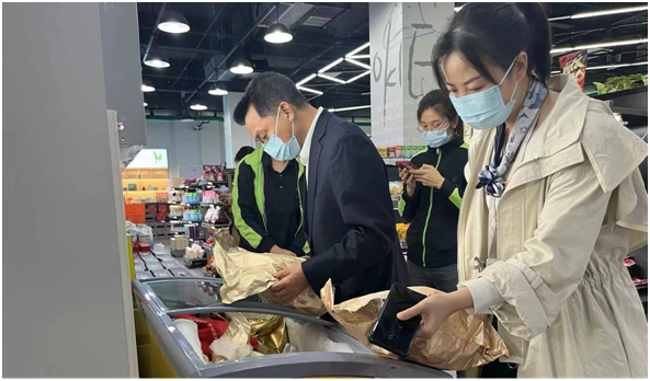 ▲裴云带队到广西蚂蚁洋货供应链管理有限公司开展食品安全检查。