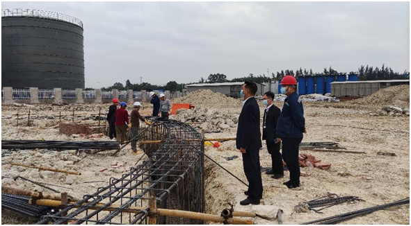 ▲12月1日,自贸区工作分队特派员韦彭、仇开前、陈雄武陪同片区绩效考评笫三方到国投电厂三期工地调研,研究如何加快推进项目冷却塔因设计变更把建设工期追回等问题。