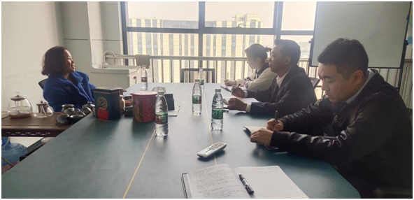 ▲12月5日,自贸区工作分队长裴云接待广西化联发展有限公司总经理王伟新一行,双方研究加快推进项目建设和举行项目开工仪式等事项。特派员朱自云、仇开前、陈雄武参加。