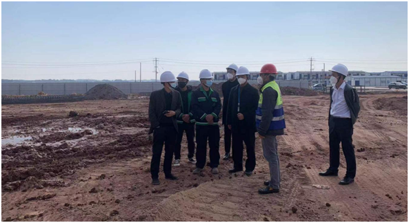 ▲12月7日,自贸区工作分队长裴云踏勘金天地改性沥青项目新工地,检查施工现场安全生产。特派员黄天杰、陈雄武参加。