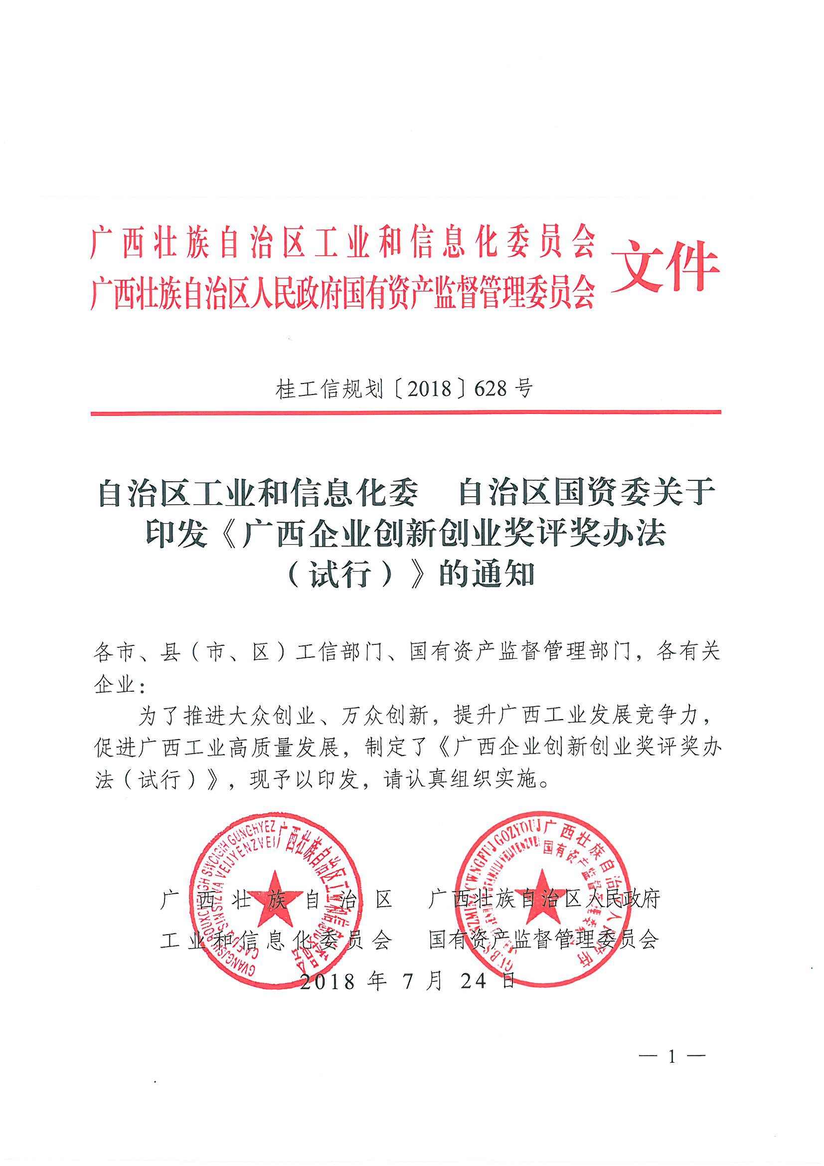 自治区工业和信息化委 自治区国资委关于印发《广西企业创新企业奖评奖办法(试行)》的通知